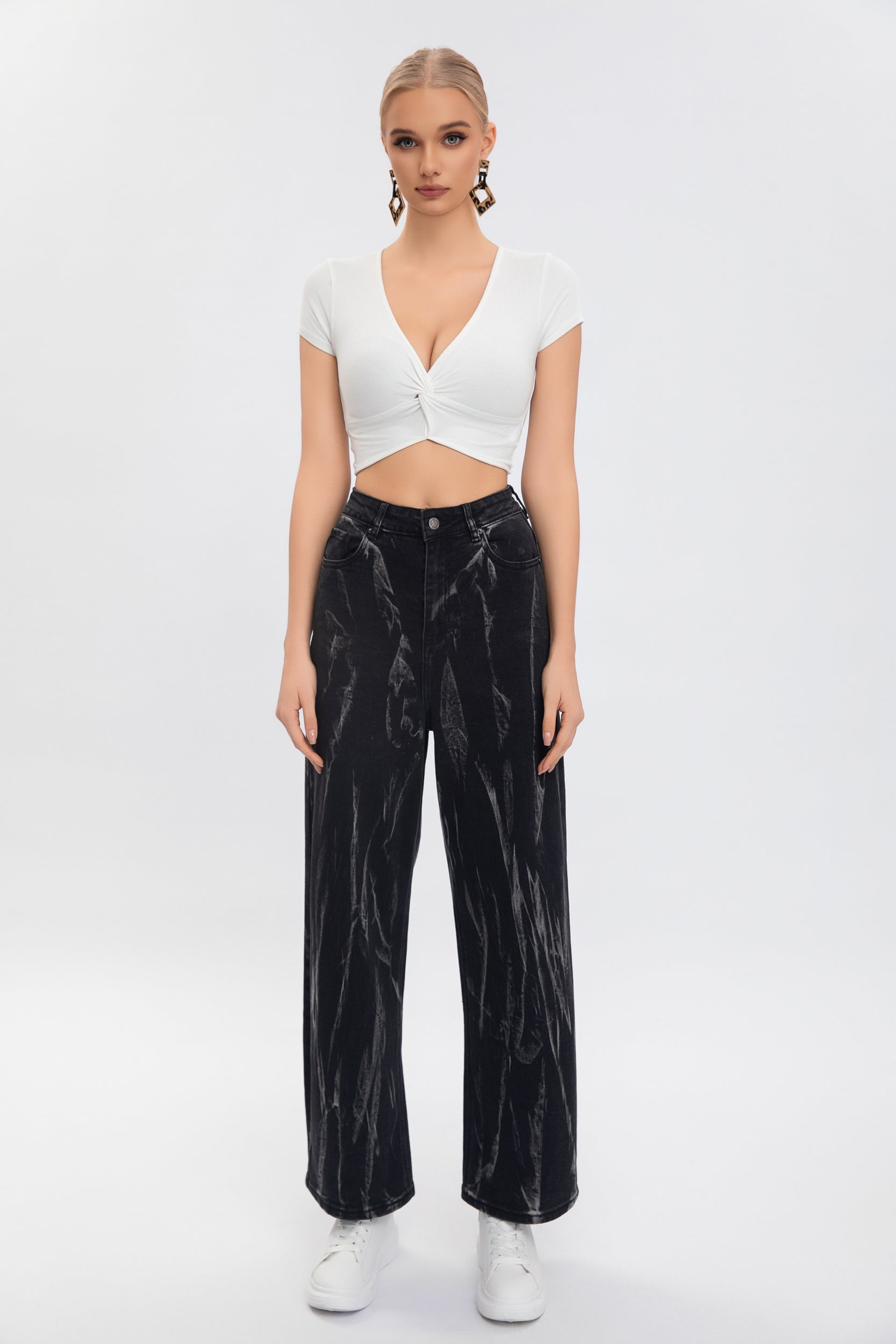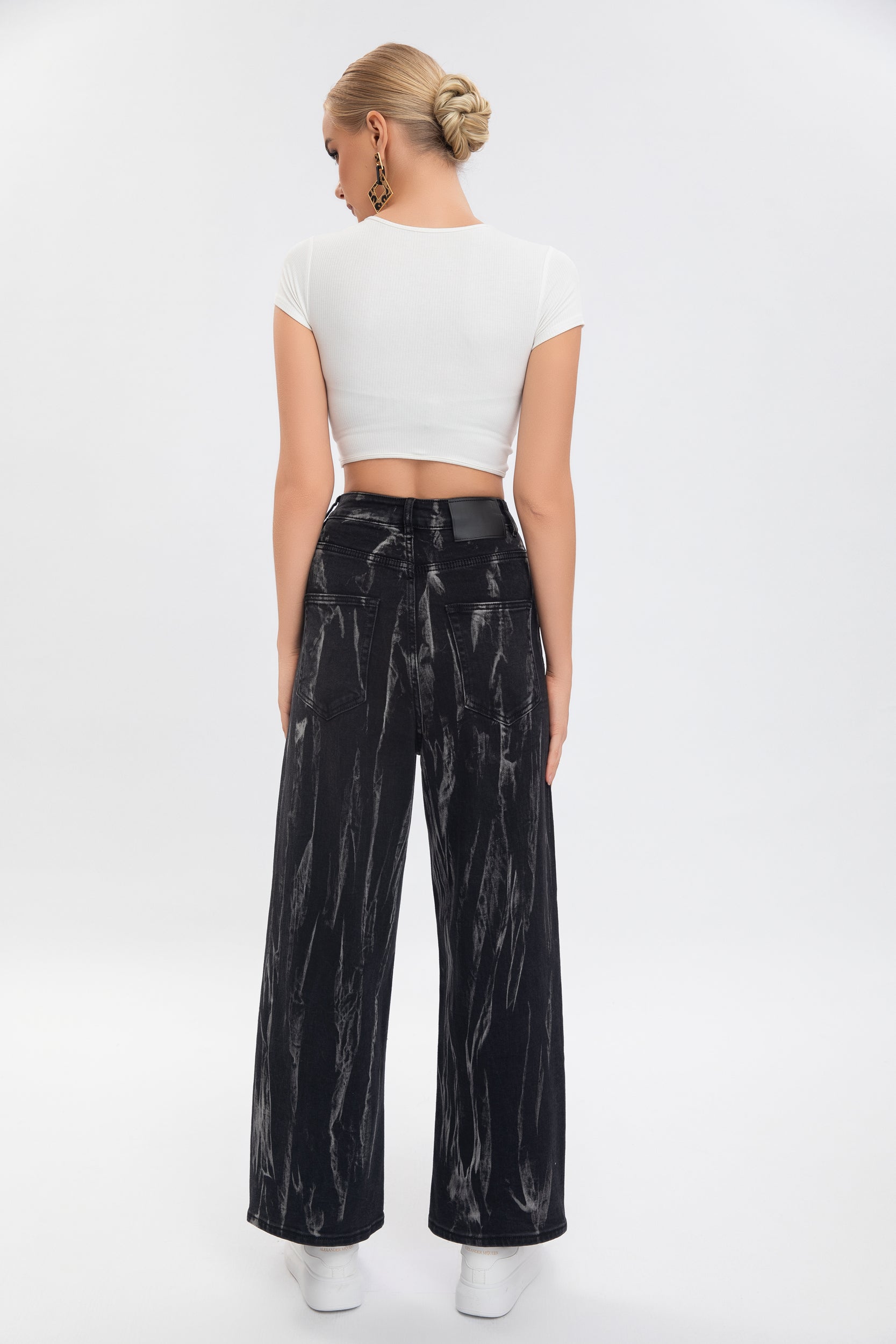 Il jeans barrel nero overdye da donna firmato Farfallina è un capo essenziale per uno stile urbano e contemporaneo. Realizzato in denim elasticizzato, presenta una vita alta che valorizza il punto vita e una gamba ampia per una vestibilità comoda e moderna. Il trattamento overdyed conferisce profondità al colore nero, rendendolo perfetto sia per outfit quotidiani che per look più audaci. Dotato di cinque tasche e chiusura con cerniera e bottone metallico, è pensato per chi cerca qualità e personalità.