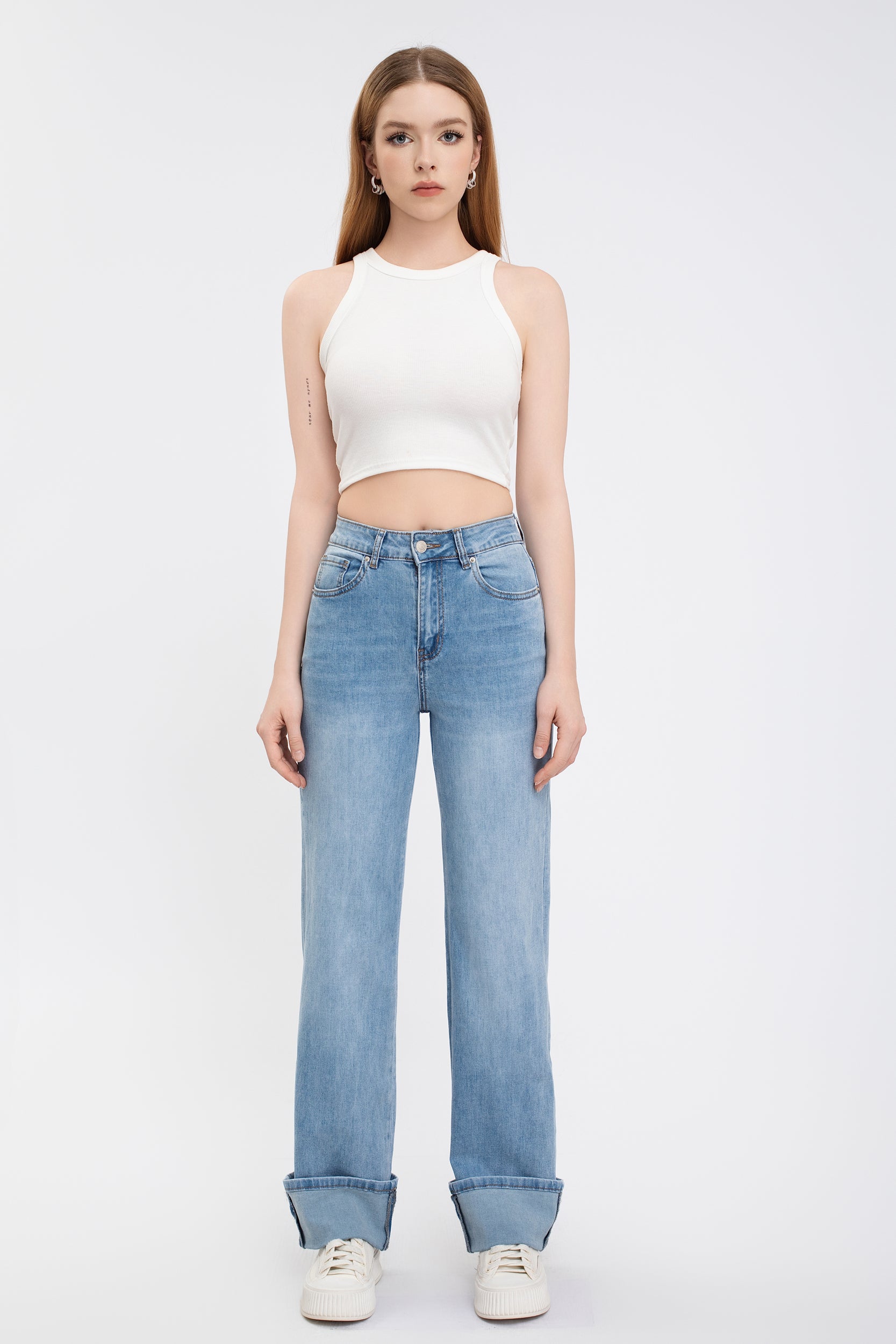 Il jeans con risvolto da donna è un capo dal gusto casual e raffinato, ideale per creare look versatili e sempre attuali. Realizzato in denim elasticizzato, offre una vestibilità comoda con vita media, cinque tasche e gamba dritta. Il dettaglio del risvolto al fondo conferisce un tocco informale ma curato, perfetto per outfit da giorno o da ufficio. La chiusura con zip e bottone metallico completa un design pensato per un pubblico femminile dinamico.