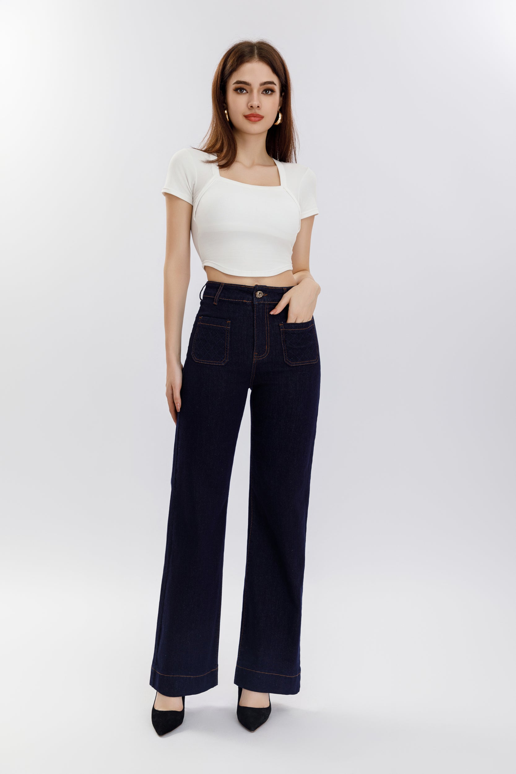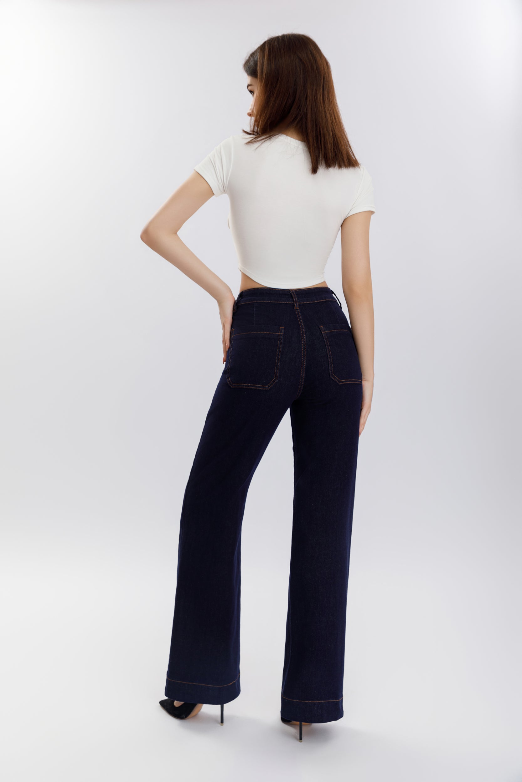 Il jeans con tasche frontali da donna unisce comfort e stile grazie al suo taglio moderno e alla praticità dei dettagli. Realizzato in denim elasticizzato con lavaggio zero, presenta una vita media e una gamba ampia e larga per una vestibilità fluida e confortevole, ideale anche per le taglie comode. Le tasche frontali aggiungono carattere e funzionalità, rendendolo perfetto per outfit casual ma curati. Chiusura con zip e bottone metallico.